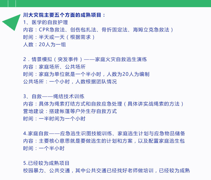 - 課程簡介: 應急逃生識圖技能訓練;家庭火災自救逃生演練;繩結技術訓練;家庭逃生計劃與應急物品儲備;...