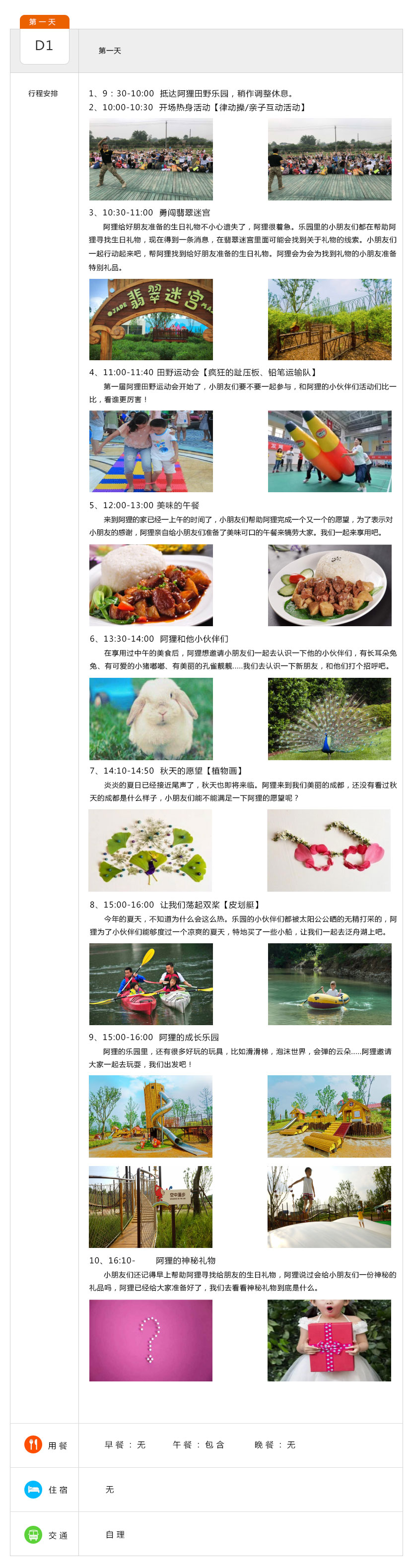 入園門票、親子活動組織、游樂體驗、午餐、戶外活動保險、飲用礦泉水、活動橫幅、后勤拍照、醫護保障等